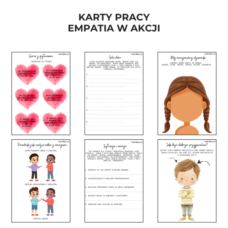Ponad 170 kart pracy na temat empatii dla przedszkolaków, edukacji wczesnoszkolnej, zajęcia rewalidacyjne, zajęcia specjalistyczne, dla pedagogów i psychologów. Są to te same karty co w innowacji pedagogicznej „Empatia w akcji – przyjacielskie serce”. Przykładowe kart pracy są w galerii produktu. Jeżeli kupiłaś/kupiłeś już innowacje to nie kupuj tych kart pracy ponieważ są to te…