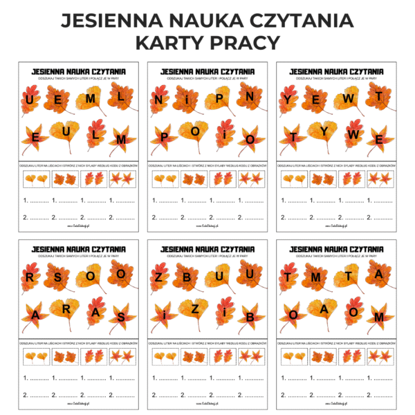 W pakiecie znajduje się 6 plików PDF, które można dopasować do indywidualnych potrzeb dziecka. Kontrastowe kolory i różne wielkości liter ułatwiają koncentrację, rozpoznawanie sylab i naukę czytania.