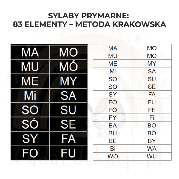 Sylaby Prymarne: 83 elementy – Metoda Krakowska