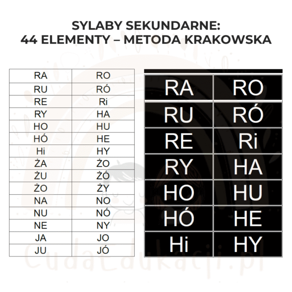 Sylaby Sekundarne: 44 elementy – Metoda Krakowska