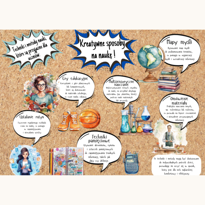 📚 Ta gazetka szkolna PDF do samodzielnego wydruku to gotowe wsparcie dla nauczycieli, pedagogów i psychologów pracujących z uczniami szkoły podstawowej. Zawiera praktyczne wskazówki dotyczące technik uczenia się, organizacji nauki i wspierania dzieci z różnymi potrzebami edukacyjnymi.