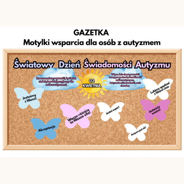🦋 „Motylki wsparcia dla osób z autyzmem” to gotowy pomysł na gazetkę szkolną, która pomaga rozmawiać z dziećmi o akceptacji, empatii i wspieraniu osób w spektrum autyzmu. Uczniowie tworzą własne motylki z życzliwymi słowami i wspólnie przygotowują wyjątkową gazetkę klasową lub szkolną.