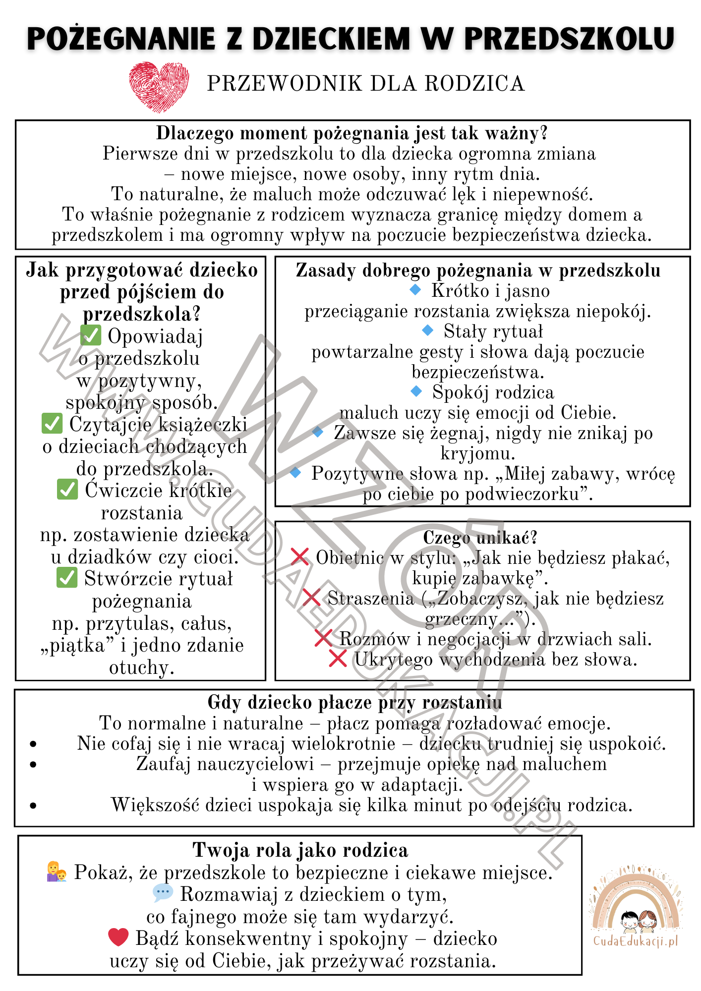 👉 To darmowe narzędzie, które pomoże rodzicom przejść przez trudny moment rozstania z dzieckiem, a nauczycielom i opiekunom – budować zaufanie i dobre relacje z rodzinami.