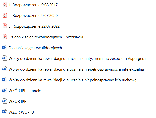 opcjonalne strony do dokumentowania IPET, aneksu, WOPFU, analiz skuteczności PPP (dokumenty te są puste, nie posiadają przykładowego wypełnienia)