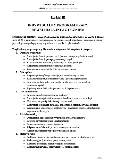 📘 Dziennik Zajęć Rewalidacyjnych – wzór do druku (Word + PDF)