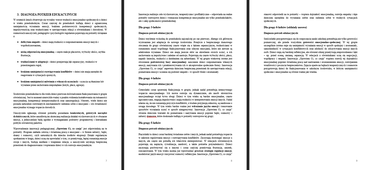 💡 Program może być realizowany przez nauczyciela wychowania przedszkolnego, pedagoga, psychologa lub pedagoga specjalnego – bez konieczności szkoleń Rady Pedagogicznej.