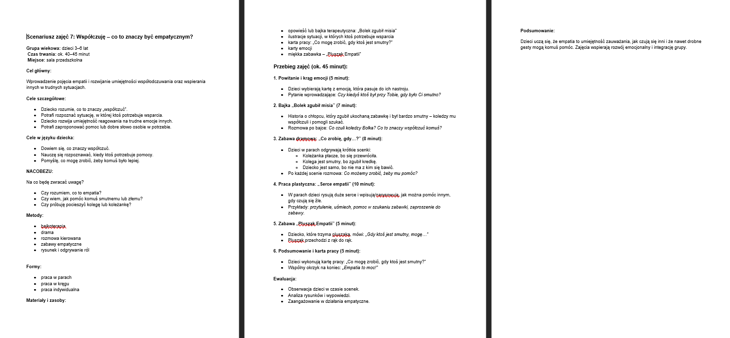 ✔️ Scenariusze 10 zajęć (bajki, drama, gry, ćwiczenia)