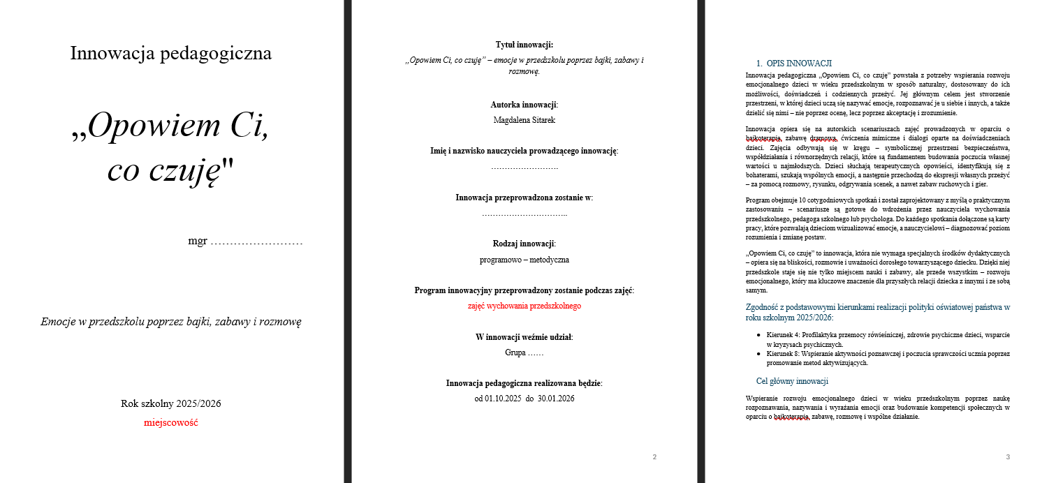 Innowacja pedagogiczna „Opowiem Ci, co czuję” – PRZEDSZKOLE