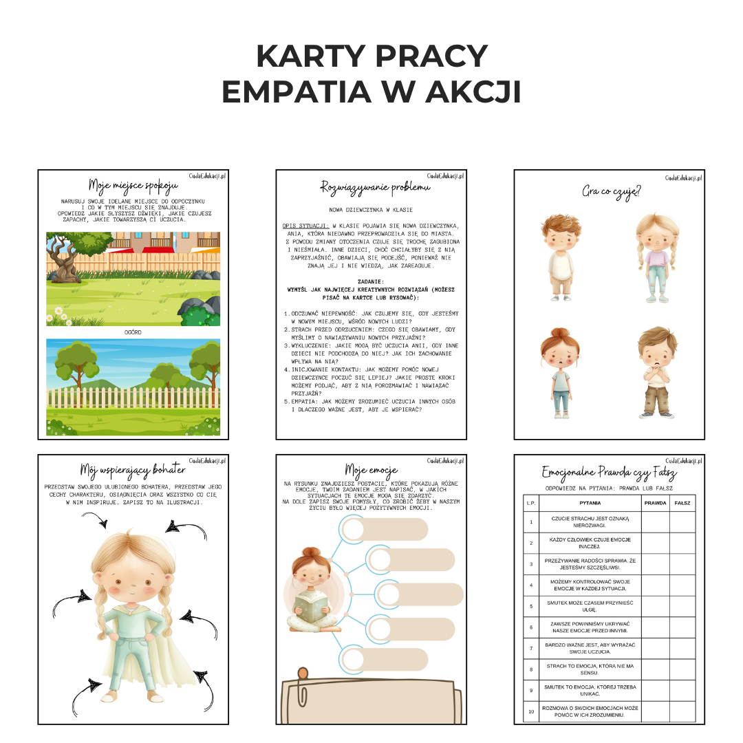 Ponad 170 kart pracy na temat empatii dla przedszkolaków, edukacji wczesnoszkolnej, zajęcia rewalidacyjne, zajęcia specjalistyczne, dla pedagogów i psychologów.
