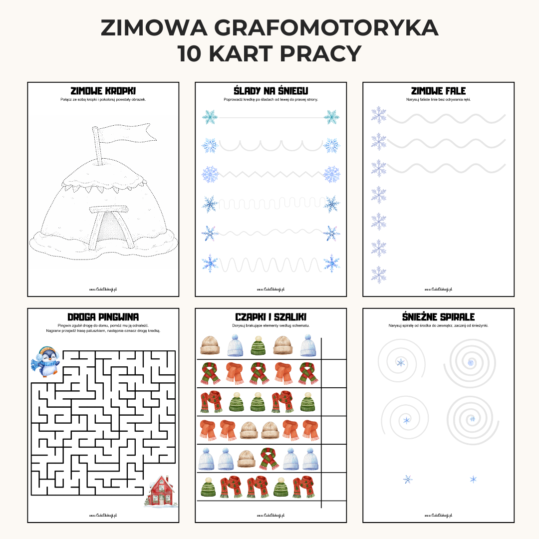 Zimowa grafomotoryka – zestaw 10 kart pracy PDF
